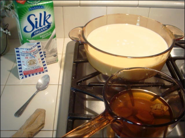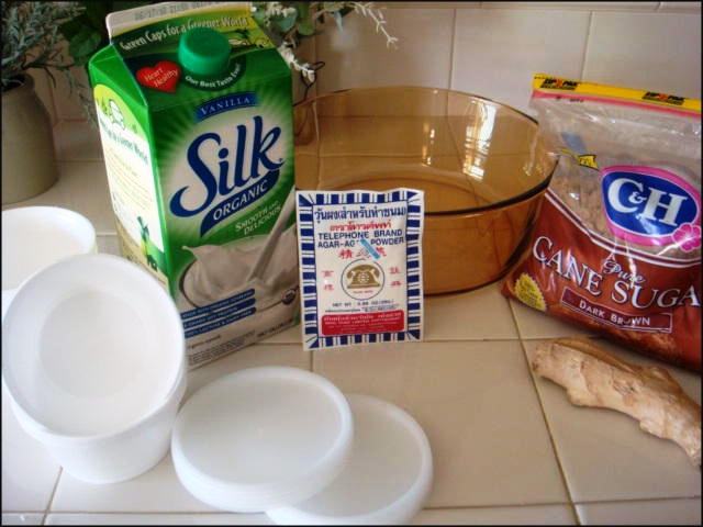- ½ gallon sữa đậu nành (1 hộp) - ¾ muỗng cà phê bột rau câu (đông sương)