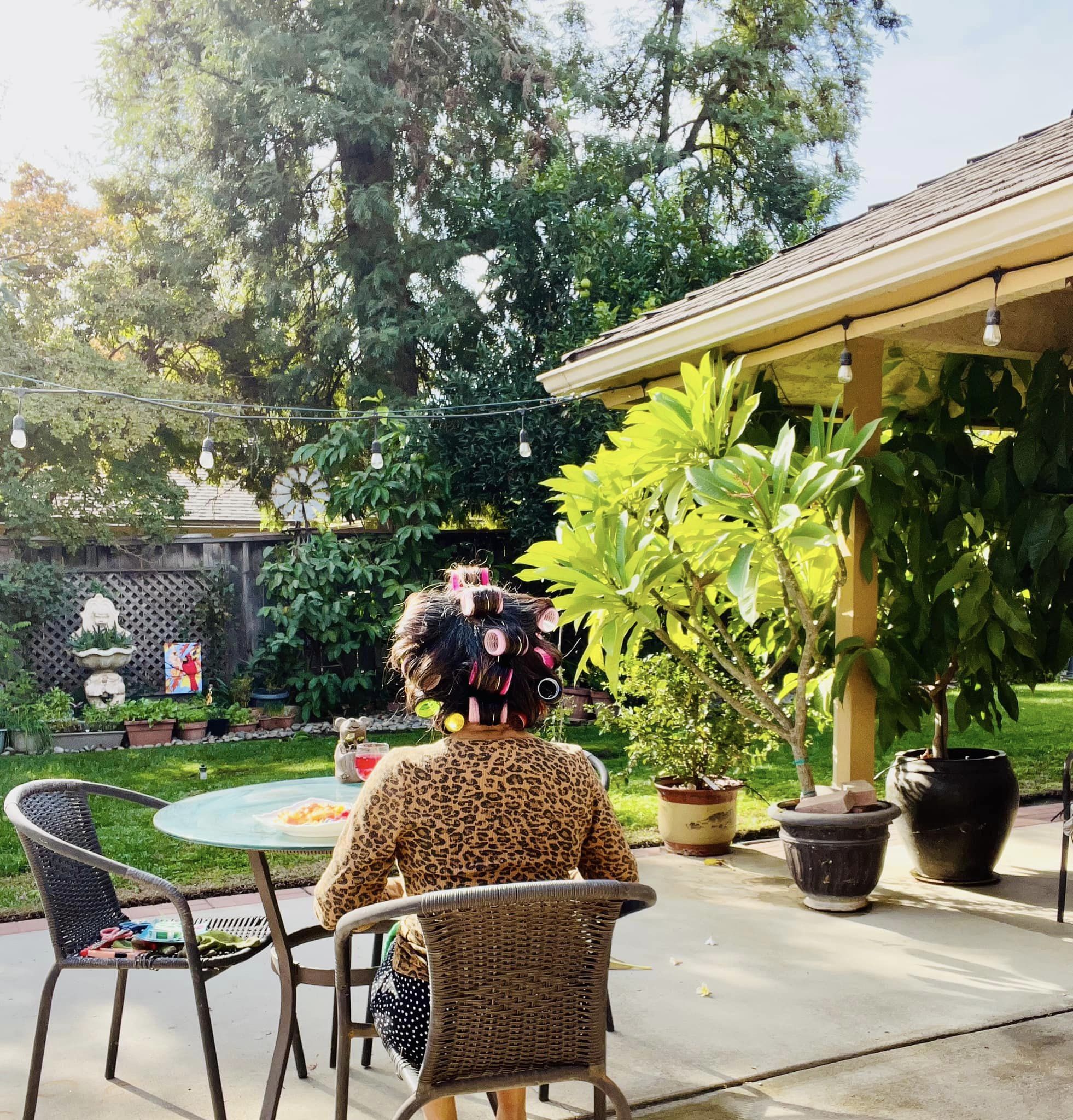 ngoài sân… Nhìn dĩa thức ăn thì vừa ý lắm, đầy đủ chất bổ và trình bày
