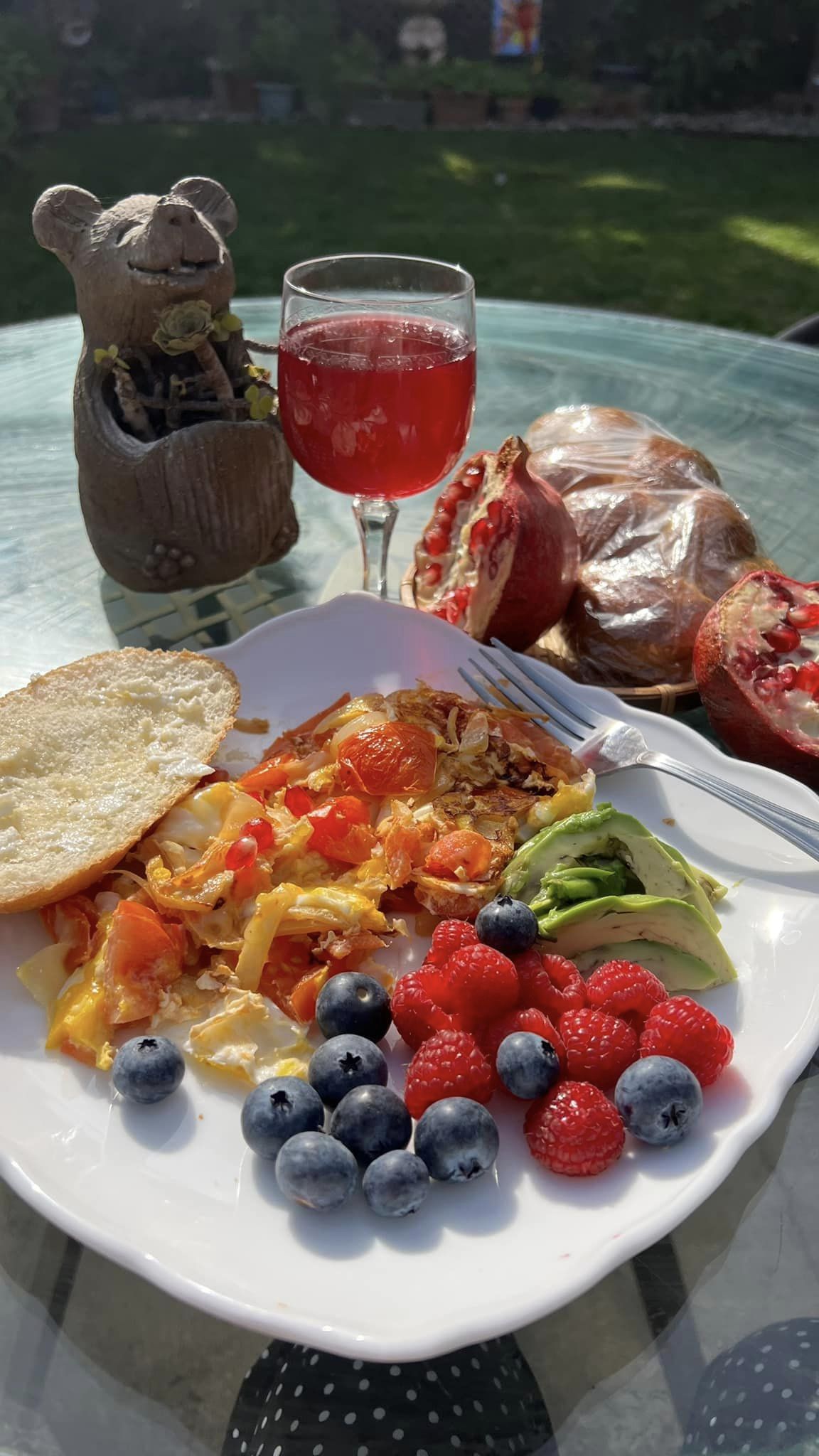 thức ăn sáng rồi mang ra ăn sau ăn luôn… Nhìn mấy trái lựu nằn trên