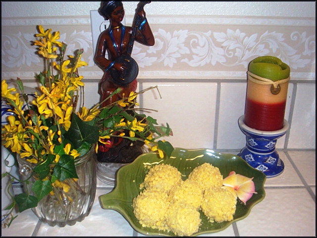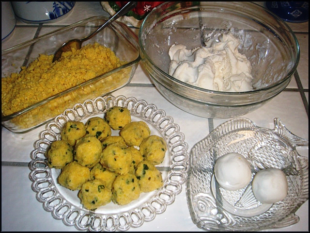 Lấy chừng 1/3 đâu xanh đã chuẩn bị trên đây để qua một bên (để lăn chung quanh bánh sau khi luộc chín).