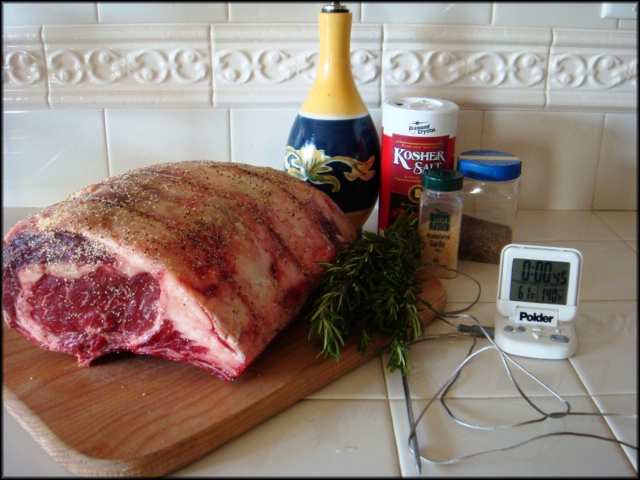 - 1 miếng prime rib chừng 5 đến 6 xương (5- 6 bone in ribs). Khoảng 10 đến 12 lbs, cho 8 đến 10 người ăn.