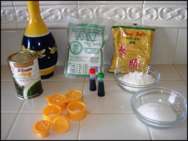 VỎ BÁNH: - 1 gói bột nếp 16 oz. - 1 lon nước cốt lá dứa 14 oz. hay nước lạnh và dầu lá dứa hòa tan - Màu xanh lá cây, màu đỏ - ½ cup nước cốt dừa hay dầu ăn - Một ít dầu ăn để thoa tay và khuôn. - Lá chuối hay giấy để lót bánh, cắt miếng tròn