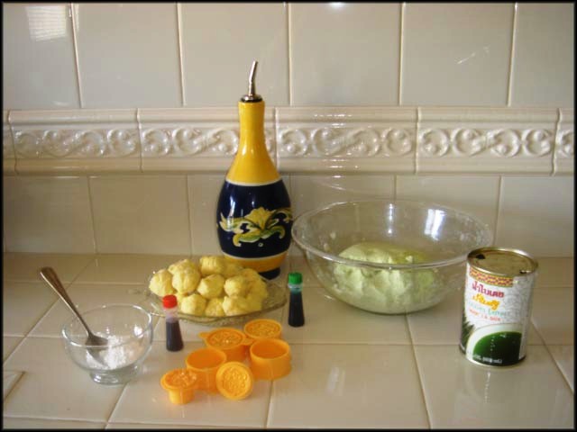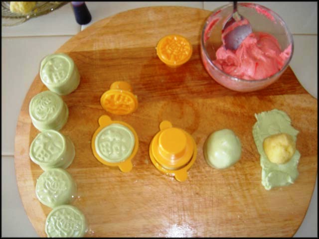 ![]() Nếu muốn chuẩn bị một vài cái khuôn nhỏ loại để làm bánh in, hoặc các khuôn thiên để làm bánh tạt. Nếu không có thì vo viên tròn cũng được. |