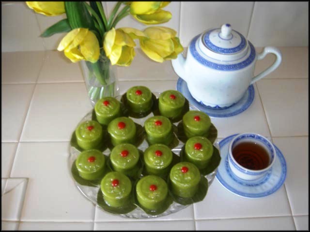 Bánh Qui là loaị bánh thuần túy miền Nam. Bánh làm bằng bột nếp với lá dứa nên muì thơm rất thanh và đậm đà. Bánh có điểm 1 chấm đỏ ở trên tăng thêm sự xinh đẹp đặc biệt của bánh. |