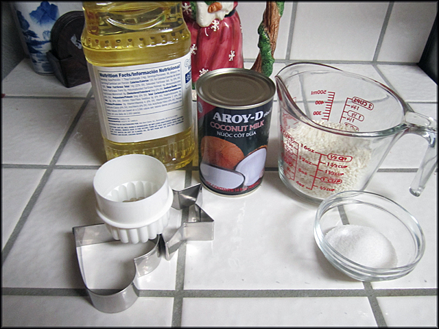 - 1 cup nếp - 1/2 cup nước cốt dừa - 1/4 cup đường - 1/2 cà phê muối - Dầu ăn để chiên