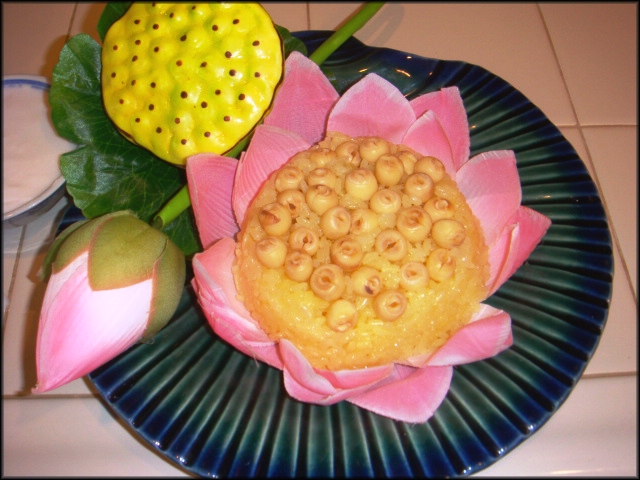 người nấu. Điểm vào là ít hạt sen thơm thơm bùi bùi. Trình bày tỉ mỉ một chút chúng ta sẽ có đoá hoa sen trên bàn, cho ngày giỗ kỵ, cho bàn tiệc hay chỉ là bửa ăn gia đình đều thích hợp! |