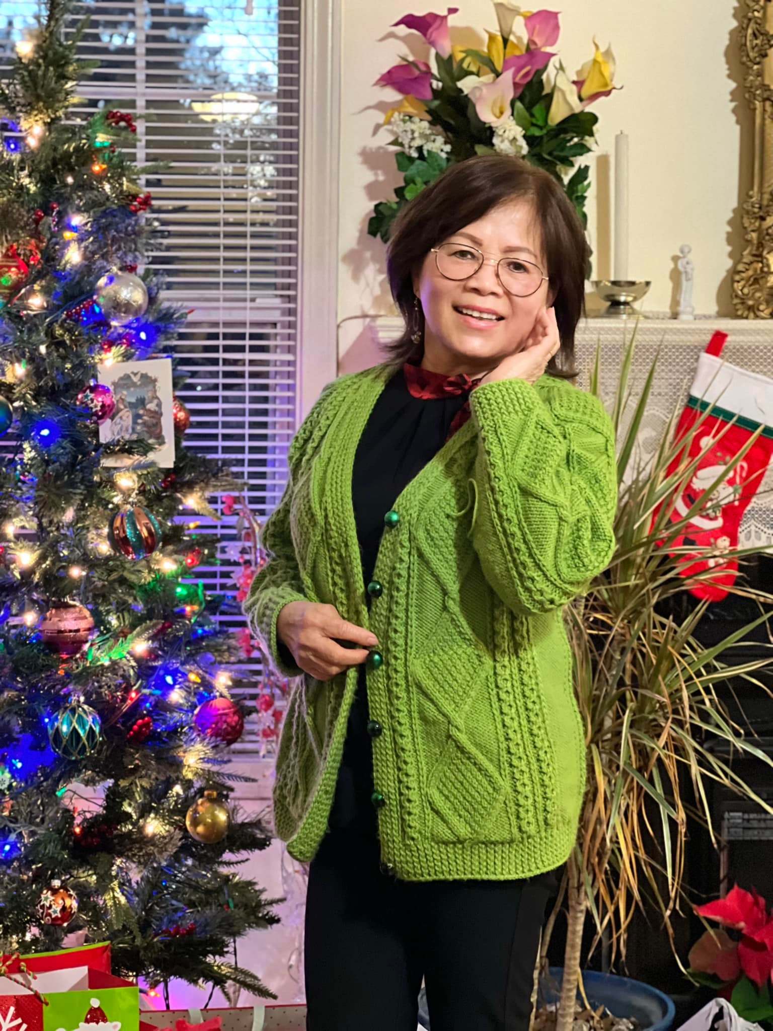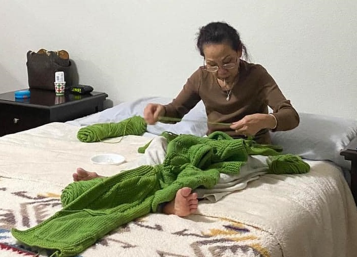 Mặc áo len màu xanh lá này, nhớ vô cùng dáng má tôi hao gầy ngồi đan áo