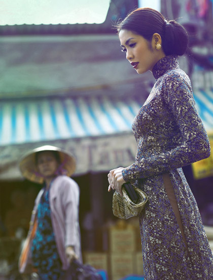 hờ hửng trên tóc, trông chị duyên dáng và đầy nữ tính. Trên sân khấu,