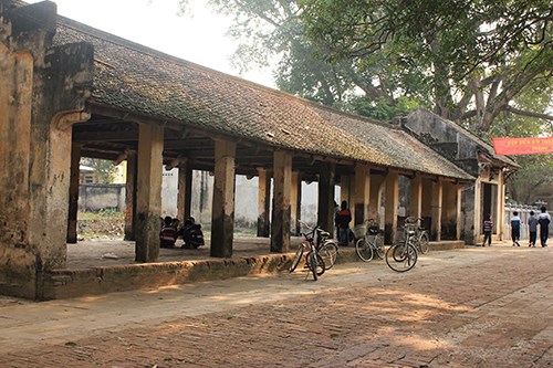 trong gian hàng có lợp ngói nằm trên cao, khi bước