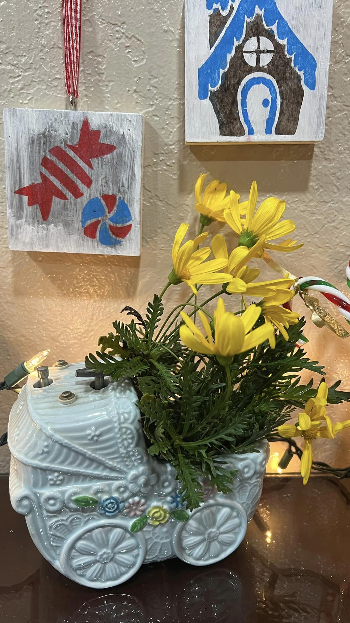 cái bình mà ngày sinh con mình được tặng, cái bình xanh có hình chiếc