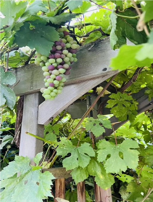 tôi vài hôm. Từ trong phòng ngủ nhìn ra giàn nho đang khen tấm tắt… bỗng
