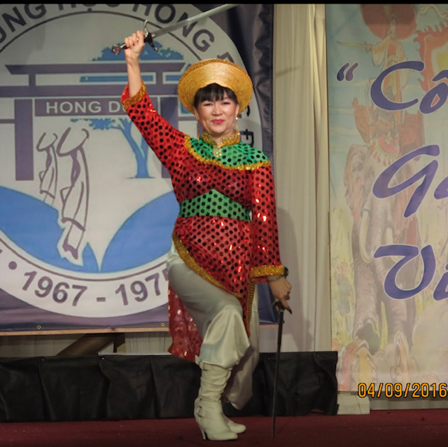 trong màn múa kiếm tiết mục Nữ tướng Bùi Thị Xuân mà còn góp mặt là một