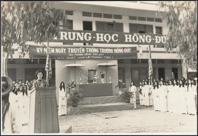 vài hôm sau cả trường Hồng Đức đang còn giăng đầy cờ hoa, tranh ảnh chưa